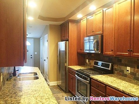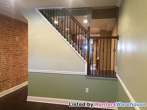Stunning tri-level row home beautifully renovated located in the heart of Hampden. The main level features a living room and dining room separated by a center staircase. The two sided galley kitchen has granite countertops and stainless appliances. Striking wood floors, exposed brick, washer dryer, powder room, and backyard access which has a 2 car parking pad. Upstairs there are two comparable bedrooms with generous closets and a hallway bath.. The master bedroom occupies the top level with it's en suite and walk in closets. Basement is unfinished but provides for extra storage. There is a quaint front porch and a nice back yard. Minutes from 83 and all the restaurants, bars and shopping Hampden has to offer. There's plenty of angled parking out front for you or your guests. Available now. This is a must see for a small family or group of singles that really cares about living in a quality environment. Well referenced pets OK! Call Rose 410-598-1501