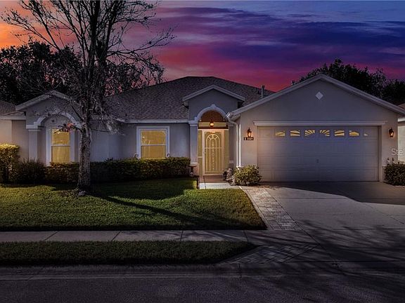 Just bring your furniture! Beautiful 3 bed/2 bath + Den open floorplan home in Carillon Lakes in South Lakeland. This home has an oversized driveway, extended back patio, New ROOF, 1 year old A/C, New Water heater, new commodes, hardware in the bathrooms, New Double Pane Windows, lots of natural light, storage space, and inside utility room. The large kitchen has views of the wooded preserve and has 2 year old LG stainless steel appliances, and features a breakfast bar. The master bedroom has sliding glass door access to the patio and a HUGE walk-in closet. Master bathroom has dual sinks, walk-in shower, new shower head, and jetted tub. The two large guest bedrooms have lots of closet space and the bedroom furniture set in the front bedroom is included. The Den has built-in shelving and can be used as an office, craft room, library, or flex space. The extended screened-in, covered back patio has a grill that is included and the patio furniture is negotiable. Carillon Lakes has a 24 hour manned gate house, clubs, activities, and amenities, including pool, hot tub, gazebo, walking trails, boating, fishing, tennis, pickle ball, basketball, gym, large clubhouse, craft room, library, and more all for a low HOA with Spectrum Cable/Internet included plus lawn mowing! All measurements approximate, to be verified by buyer and buyers agent.