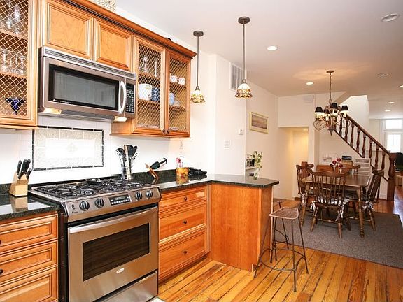 Timeless rehab by one of Canton's most sought-after contractors: Charleens Houses LLC. Charleen and her team have preserved much of the original charm of this beautiful canton rowhome. With original pine flooring, exposed brick, transom windows, skylights and a functional layout. FInished basement w/ a full bath and 3rd BR. Balcony off MBR & private fenced rear. Just a short walk from the square.