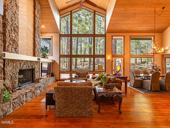 Resting on the 11th tee of the Canyon Course in Forest Highlands, this stunning home blends luxury and mountain serenity. With dual primary suites, a sun-filled great room, natural stone fireplace, rich wood floors, and a chef's kitchen featuring a Wolf range, dual ovens, and a wine room, it's designed for both comfort and entertaining. The exterior showcases elegant stonework, a metal roof, and an expansive Ipe wood deck that captures the beauty of the surrounding pines. This is more than a home, it's a legacy retreat in a premier golf community where families gather, friendships grow, and memories are made for generations. SELLER IS WILLING TO PAY ONE-TIME MANDATORY GOLF FEE AT PURCHASE. Reach out to agent for details!