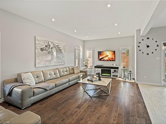 Welcome to Copperfield estates! This reversed pie lot serves 4+1 bedrooms, 3.5 bathrooms, a 2 storey home that's located in a friendly neighbourhood. Being an open concept home, it features an enjoyable living area to spend quality time with loved ones and a kitchen that includes a large island, pantry and fluorescent lights. On your way upstairs, you'll discover 4 stunning bedrooms and 2 bathrooms serving plenty of space for a whole family. You will adore the vaulted ceilings in the primary bedroom featuring a window in the large walk-in closet, and a walk-in glass shower in the primary bathroom. The basement has its perks as it's fully finished featuring an additional bedroom and bathroom useful when having relatives or guests over! Going to the backyard, you will see a fully finished fence and a shed to place plenty of storage. You can't beat an amazing location. Close to 401, Victoria Hospital, Costco and Malls. Great Schools, Playground and Parks. Don't miss the chance!