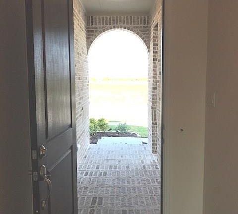 Mustang Lakes Rambler on a fenced, corner lot. Served by exemplary Prosper ISD. Light and Bright. 2017 construction home features 8 ft. doors throughout, 10' ceilings, hardwood floors in all main living areas, open eat-in kitchen w Quartz countertops, upgraded lighting & fixtures, extended dining area, covered rear patio, laundry and mud room off of garage entry, and gas fireplace! Lease includes front and side yard maintenance, and refrig. Amenities include fitness center, Jr Olympic pool, resort & tot pool w water falls, cabanas, and tanning decks, 4 tennis courts, 10 miles of walking trails, playground & amphitheater, & centrally located 20-acre park with private 5 acre stocked lake, fishing deck and island