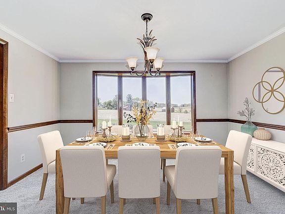 Beautiful Rancher on 1.97 acres boasting a neutral color palette, sun-drenched windows, expansive in-law suite with a private entrance, and an additional driveway! A fantastic multi-family opportunity awaits! Spacious living room embellished with wood-beamed ceilings and easy access to the wrap-around deck; Formal dining room graced with a lofty bay window, crown molding, chair railing, and amazing pastoral views; Eat-in kitchen with ample cabinetry, cooktop, wall oven, and casual dining area; Primary bedroom highlighted with en suite full bath; Two bedrooms and a full bath, complete the main level sleeping quarters; Travel downstairs to find the sizeable in-law suite with a private driveway and entrance, family room, second kitchen, bedroom, full bath, bonus room, laundry room, backyard access, and storage; Recent updates: paint, landscaping, family room sliding glass door, two-lifetime electric water heaters, lower level HVAC outside compressor fan unit, septic drain fields, main level carpet, vinyl flooring, and more! Exterior Features: Landscaped grounds, sizeable wrap-around deck, patio, secure storage, private lot, two driveways, and pastoral views! A MUST SEE