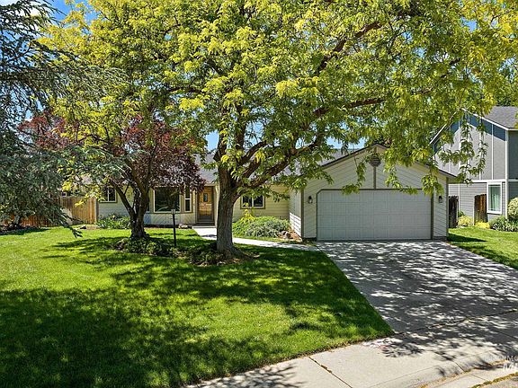 Ride your bike to the Village from this extensively updated single level home!. Super clean home in quiet cul-de-sac fresh paint in and out! New carpet, lvp flooring and Lights. The roof windows and hvac have been redone. Move in and enjoy 3 bedrooms plus an office, skylights in both bathrooms. The common areas include a large vaulted great room with gas stove/fireplace and spacious eating area! The kitchen boasts a double oven and a breakfast nook as well. Out back you will find a large, covered patio, a storage shed, Garage is insulated, and a new fence will be installed along south side prior to closing. This great west Boise location is just a minute to the village and a hop, skip and jump from either the greenbelt on either Eagle Road or Glenwood. Downtown Boise is only 20 minutes for the parade, a game or a show!