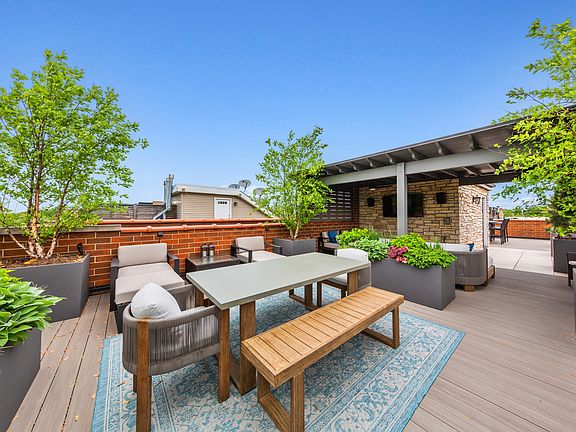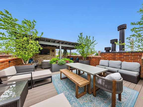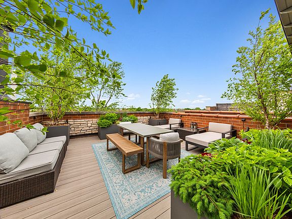 Experience true penthouse living in this exceptional, sun-drenched 2-bedroom, 2-bath luxury residence with a bonus loft/office and one of the most impressive private rooftop decks in Lakeview. This one-of-a-kind home offers unobstructed, lifetime views of Wrigley Field, the skyline, and sweeping 360-degree city views! Previously featured on HGTV's House Hunters, this property delivers a rooftop experience unlike anything else in the city. Inside, refined craftsmanship and high-end finishes define every space. The chef's kitchen is outfitted with Wolf, Bosch, and Sub-Zero appliances, upgraded quartz countertops, and custom millwork. The open-concept living area features a fireplace, coffered ceilings, wainscoting, and built-in cabinetry, all complemented by abundant natural light and a private front balcony. The spacious primary suite includes a walk-in closet and its own private rear balcony, while spa-inspired bathrooms offer radiant heated floors, dual vanities, a steam shower with five shower heads, and a whirlpool tub. The loft level includes a 48-bottle wine refrigerator and serves as the gateway to the show-stopping rooftop deck-professionally designed and renovated with new decking, extended privacy walls, automatic lighting, integrated audio, and a full irrigation system for the mature trees and lush planters. The rooftop is thoughtfully laid out with multiple zones for lounging, dining, cooking, and gathering around the fire pit, creating a true outdoor living room with breathtaking sunset views. Additional highlights include a new furnace and A/C (2021), NEW in-unit washer/dryer, smart home features with Nest locks and thermostat, a professional network system with WiFi and ethernet throughout, a commercial-grade water pump ensuring excellent pressure across all levels, and a garage parking space with extra storage. Perfectly located near public transportation, shopping, dining, nightlife, and everything Lakeview has to offer, this extraordinary penthouse is truly in a class of its own. Explore the property in 3D-click the 3D tour to experience every detail firsthand.