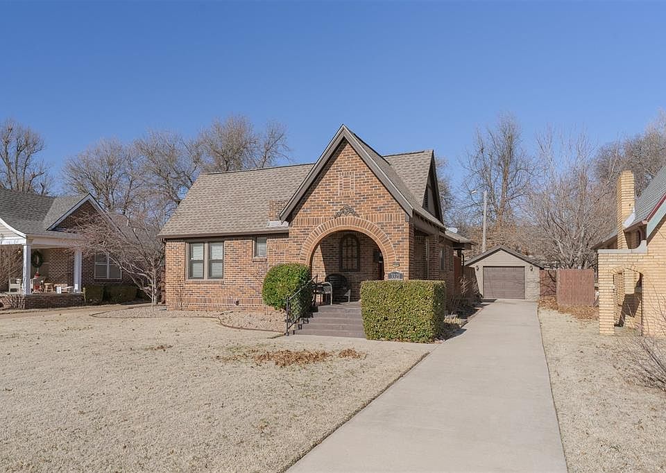 Lovely Tudor in Linwood. This home, nestled in the quiet Linwood neighborhood, is an exceptional value. It's classic brick Tudor exterior welcomes you with a spacious front porch perfect for savoring your morning coffee. Inside, discover a cozy living room with a fireplace, flowing seamlessly into the well-proportioned dining room. French doors lead to a versatile space - ideal for a study or playroom. Enjoy beautiful hardwood floors, two sunlight bedrooms, and an updated bathroom with a shower and toilet room. Functional updated kitchen has granite countertops, and an inside laundry room offers ample storage. The backyard features a covered deck for outdoor gatherings, and the manageable yard features mature plantings and a sprinkler system. Enjoy the convenience of a single-car garage with an automatic door-a rare find in this historic area. Ready for you to move in and relish the charm!