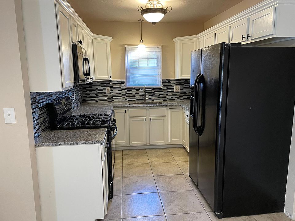 Beautiful home with hardwood floors and new luxury vinyl flooring. Kitchen has been remodeled with newly painted cabinets, granite countertops and a new gas range and microwave. Samsung stacked washer and dryer included. House was painted throughout one year ago, so still looks new. Newly remodeled third bathroom with shower. Large master bedroom with its own bathroom. Large fenced back yard and a large covered patio. This house is like new inside and out. Excellent location and wonderful neighborhood. Tenant pays utilities and lawn maintenance.