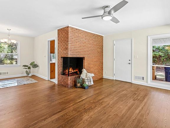 Charming Brick Ranch in the Heart of Raleigh! Step inside to discover a home that has been thoughtfully enhanced with fresh interior and exterior paint. The sanded and stained hardwood floors gleam with a rich, timeless luster, while new luxury vinyl plank (LVP) flooring and vanities in the baths add a contemporary touch. New hardware and light fixtures add a modern and stylish flair. The roof and gutters feature 30-year architectural shingles, which were installed in 2012. The windows were also replaced in 2011, ensuring energy efficiency. The family room features a masonry fireplace complemented by the addition of a new ceiling fan. The bright kitchen and dining area offer a welcoming space for meal preparation and gatherings. A hidden treasure of this property is the unfinished basement, offering an additional 480 sq. ft. Situated on nearly a 1/2 acre, the home has a peaceful wooded setting that provides a serene and private backdrop. An inviting brick patio with a raised garden bed creates an oasis for outdoor enjoyment. Located just minutes away from Lake Johnson, NC State University, and downtown Raleigh!
