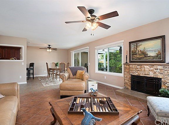 Single-level home located in Seascape Village of San Clemente on the ocean side of Interstate 5. Enter the double entry doors with large panes of glass to beautiful tile floors throughout, warm designer paint accented with white molding, 2" blinds, and newer light-catching windows add to the elegance of the bright and open floorplan. Enter the inviting Living Room with a cozy stacked stone fireplace and mantle. The Living Room seamlessly flows to the Dining Room with sliding doors to the private backyard facing north with wood privacy fence, new patio cover and relaxing hanging swing. The landscaping surrounds the cement patio and eating table where family and friends can enjoy the Pacific Ocean breezes The remodeled kitchen is well appointed with white Corian counters, tile backsplash, rich self-closing wood cabinets, stainless steel appliances, double sink and breakfast bar. The Master Bedroom features warm paint, walk-in closet, double sinks, walk-in shower, skylight, and large window looking out to your tranquil atrium. The secondary bedrooms are generously sized one with mirrored closet doors the other with built in shelves and share the remodeled full hall bathroom. Efficient A/C, & furnace, and water heater, and multiple ceiling fans throughout. Convenient single level two-car attached garage with built in storage shelves, shop lights and extra electrical plugs. Amenities include multiple pools, spa and tennis courts. Close to beaches, shopping, with low taxes.