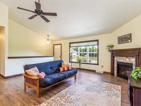 Well maintained ranch, 5 years young with nice curb appeal! Move right in and enjoy the brick patio in front overlooking greenspace & a pond or 3 Seasons Rm overlooking the backyard. Extra touches include plant shelf off the vaulted ceiling, decorative gas fireplace, staggered maple cabinets, snack-bar island and beautiful hardwood floors. Open lower level has an egress window & is stubbed for a bath, just waiting for your finishing touches. Extra deep garage. Partial second stall is approx 40' for extra toys & space. Located in the Red Smith school area.