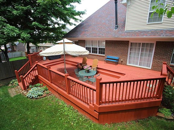 Beautiful 3 bedroom, 2 1/2 bath home in a quiet neighborhood located only minutes from shopping and restaurants. This brick home offers a vaulted Great room with fireplace and is wide open to the kitchen making it perfect for entertaining. The home is move in condition, has gorgeous inlaid hardwood floors, stainless steel appliances, alarm system, surround sound speakers, first floor laundry and master. The master has a beautiful en suite bathroom (updated in 2016) with marble counter tops, double sinks, updated ceramic shower and a soaking tub. There is a bonus room upstairs which could make a wonderful office. The huge deck overlooks a beautiful fenced in back yard. The basement has been roughed in if one wants to complete. Sellers offering a home warranty.