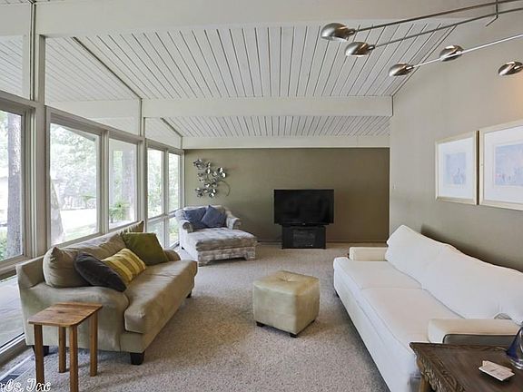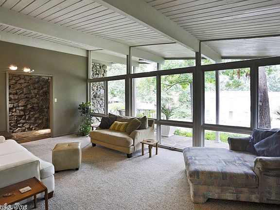 A rare mid-century find in desirable Pleasant Valley. This unique 4bd 2.5ba home features exposed beams throughout, vaulted pine ceilings, stone floors and floor-to-ceiling windows. Some extras include a gourmet-style kitchen with breakfast bar and gorgeous hardwoods, bonus room with stone fireplace, plenty of extra storage, two patios and a wooden deck backing up to greenspace.