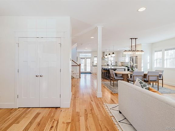 The gourmet kitchen is a chef’s dream, featuring large quartz island, plenty of cabinet storage, seating for 4+, gas range, granite farm sink & 2 refrigerator drawers. French doors open to an oversized Trex deck w/café lights, overlooking private backyard, ideal spot for outdoor gatherings. Also features 2-car detached garage with alley access, ensuring privacy & ease of parking.
