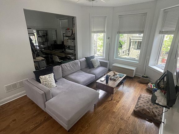 GORGEOUS, SUN-FILLED, and SPACIOUS!! This 1bed/1bath with high ceilings is available in Humboldt Park on 10/25/2025!! Come see this recently renovated, modern greystone unit, surrounded by incredible green spaces! The building is conveniently located down the street from Humboldt Park/606 Trail and is within a 10-minute walk to grocery stores, retail shops, restaurants, gyms, and more. The unit offers pristine hardwood throughout and has central AC/heat, adjustable built-in humidifier, ceiling fans, cable-ready TV outlets, and light dimmers in every room! The kitchen consists of a gas stove/oven, modern stainless steel appliances with ample amounts of cabinet space, breakfast bar island with extra storage, and pantry. Bedroom is long with large walk-in closet. The unit comes with a private deck, and communal outdoor space for all residents. New washer/dryer is free and located in common laundry room. Currently, there is no off-street/garage spaces available to rent, but there is plenty