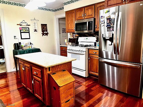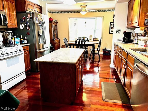 - Description: Brazilian cherry floors, bay window, stainless refrigerator, dishwasher & microwave, Quartz counters,Flooring: Wood
