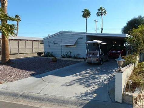 Well maintained, double wide home, with two beds, two baths, open concept kitchen and living area, and covered patio perfect for entertaining. This home is in a great location on a quiet Cul de sac, yet close to all amenities. Upgrades include: ceramic tile floors and kitchen counter tops, double pane windows, tiled patio, laminate in the dining area and carpet in the rest of the home. Other features include a built in dining room hutch, swamp cooler and A/C, walk in shower, or easy access bath tub, and laundry room. Yard includes citrus trees, and a peach tree. Golf cart included to play all the free golf on two course's for two prople on title. Brokered And Advertised By: Tri Palms Realty Listing Agent: Wesley Bauer
