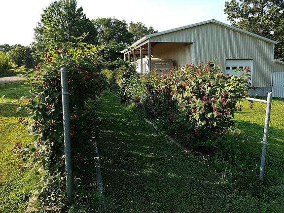 This property includes the house, shop building, a shed, and 5.04 acres. (Value of the outbuildings apparently doesn't get figured into the Zestimate - that is why it's so much lower than the asking price. Information on the outbuildings is included in this description.) The house is a 3 bedroom, 1 1/2 bath ranch style over a full unfinished walkout basement. It has a large attached 2 car garage and 8' x 40' covered front porch. The windows were replaced with Jeld-wen vinyl windows and the siding is Continental polymer siding with full transferable warranty, installed in 2018. The kitchen was remodeled with a more open floor plan, Vericore luxury vinyl plank flooring, and maple Cardell cabinets, painted Bonsai in color with soft close drawer slides and hinges. The living room and hallway have Vericore luxury vinyl flooring, the upstairs bath has Allure luxury vinyl plank. The bedrooms have carpet. The property also has a 26' x 36' shop building that is fully insulated, has a half bath, and heated/cooled with a mini split system. The shop building has an 8' x 36' closed in lean to shed, as well as a 12' x 36' open lean to with a 30 amp outlet and sewer dump for a camper. There is an additional small shed, open on one side. The property also has a small home orchard, with mature apple, peach, and wild plum trees, as well as a young cherry tree, grape vines, tame blackberries, raspberries and elderberry plants.