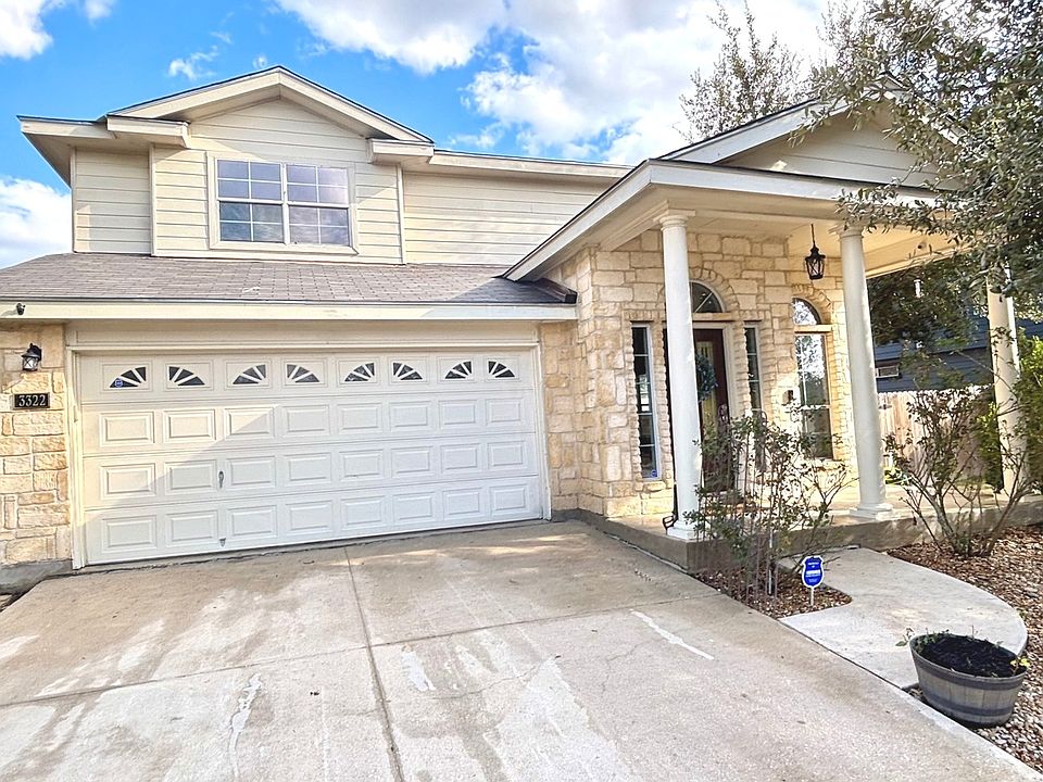 This stunning two-story, 4-bedroom, 3.5-bath home boasts 2,641 sq. ft. of thoughtfully designed space. The main level features an inviting living area, an open-concept gourmet kitchen with sleek granite countertops, spacious primary suite and conveniently located utility room, and guest half bath. Upstairs, a second spacious living/media area offers the perfect retreat for family gatherings, along with a secondary suite and two additional bedrooms connected by a Jack & Jill bath. Step outside to an extended backyard featuring a wood patio and a storage shed, perfect for outdoor storage. Completing this home is a two-car garage workshop with built-in tool benches, ideal for any DIY enthusiast. Nestled in a charming New Braunfels neighborhood, this home is ready for its next adventure-with you!