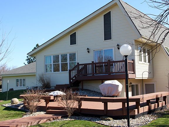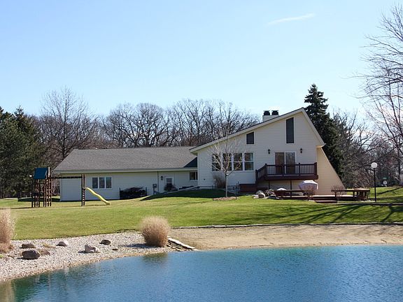 Peaceful 2.5 Acre Lot w/ Magnificent Pond! Completely remodeled in 2008 including siding, windows, doors, baths, furnace, A/C, trees, flowers, paint & carpet. Open & bright rooms. Granite & tile kitchen features peninsula island. 2 master suites. 2-story stone fireplace. LowE glass windows keep sunroom warm in winter & cool in summer. Outdoor gathering places on multiple decks, beach, grass & pond