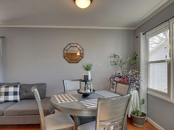 This centrally located 3-bedroom, 2-full bath home is packed with charm and modern conveniences! Enjoy the warmth of a cozy fireplace in the living area, beautiful hardwood floors, and a spacious kitchen that opens to the dining area—perfect for gatherings. The additional finished space in the basement offers great versatility, with the potential for a 4th bedroom, home office, or recreational area. Outside, you'll find a large backyard with an above-ground pool and an oversized 1-car garage for extra storage. Conveniently located near shopping, and dining, this home is a must-see! Schedule your private showing today!