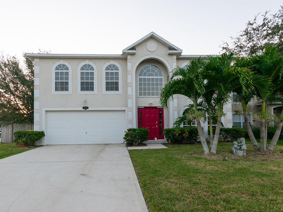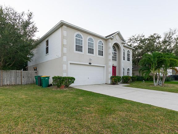 Gorgeous 5 bedroom home on fenced corner lot located less than 5 miles from Crane Creek Reserve, schools, shopping, and east of I-95. Foyer opens to staircases and soaring ceiling with living room off to side. Roomy well equipped eat in tile kitchen showcases breakfast bar, prep island with vegetable sink, matching appliances including built in ovens, and cook top, NEW granite counter tops, separate sink, and pantry. Spacious family room of kitchen opens to patio. Upstairs features loft/bonus area. 2nd floor master bedroom offers deep walk in closet, and en-suite bathroom including soaking tub, and dual sinks. Split floor plan with 1st floor guest bedroom and bath. **New neutral 2 tone paint and carpet throughout!!** Private backyard off screened in covered patio with matures trees perfect spot to relax and soak up the Florida sunshine. You are going to love this amazing home!!