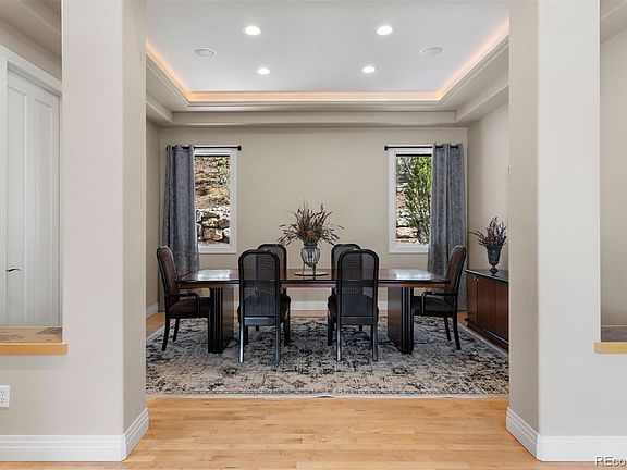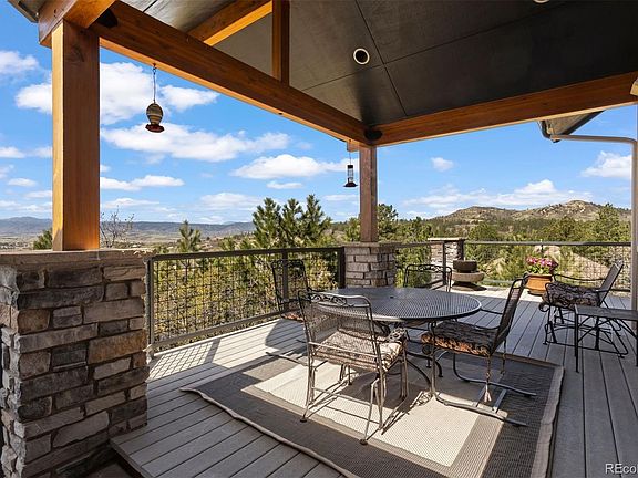 Welcome to your mountain sanctuary in the prestigious Village at Castle Pines. Embrace the Colorado lifestyle with breathtaking natural surroundings and abundant natural light. Step into an inviting and open living space, where the great room draws you in with a window wall showcasing the expansive mountain views. The fireplace, with stacked stone surround, is the perfect complement to cozy evenings in. The eat-in kitchen, with stainless steel appliances and double ovens, which flows into the adjacent formal dining room, is ideal for hosting. The tranquil main level primary suite features a gas fireplace and private deck access, which offers the perfect spot for morning coffee or evening stargazing. The luxurious en suite primary bathroom features a double vanity, double showerheads, a beautiful soaking tub, and designer tile work. The finished walkout basement, with two additional bedrooms and a bonus room, provides plenty of space for guests, gaming, entertaining, and more. Irresistible unobstructed mountain views await on the large, partially covered upper deck and the covered lower patio, where you can take in Colorado’s true beauty. Don't miss this opportunity to live the ultimate mountain lifestyle in this remarkable home!