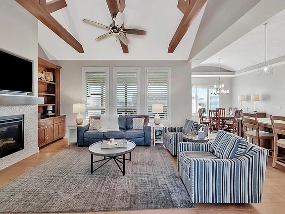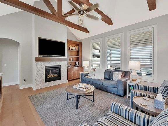 BETTER THAN BRAND NEW!!! Welcome home to this fabulous 5 bedroom home just waiting for you in Fontana! Walking into this gorgeous home you'll be blown away by the openness of the living with vaulted ceiling and exposed beams, dining room and incredible kitchen with the double ovens, loads of cabinet and counter space not to mention the quartz and the backsplash - it's beautiful. Don't forget to look up! The barrel ceiling has incredible paint and texture over the dining and kitchen. You'll love the plantation shutters the sellers added to every window in the home. Off of the dining room is the covered screen porch with fireplace AND space for the tv - with the back of the house facing east, you'll love your morning coffee or spending your summer evenings here. The primary bedroom is large and flows into an incredible bathroom with abundant natural light, two vanities and the closet of your dreams. You'll enjoy that the main floor laundry connects to the master closet. There is one more large bedroom on the main floor near a full bath. Head upstairs for another bath and huge bedroom you could do almost anything with. The walkout lower level is lovely with another fireplace, flanked by bookshelves the sellers had built in, a great wet bar, two more bedrooms. Sellers added a huge patio area for all of your entertaining and the oversized lot has been fenced. You'll find and oversized three car garage, a well and a sprinkler system. Sellers JUST had the entire interior repainted and everything is ready for you to move into this better than brand new home!