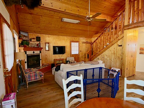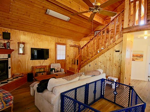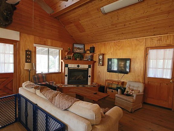 This cozy, rustic cabin is the perfect mountain retreat or full-time home, sitting on 1.23 acres of towering pines at the end of a quiet road. Home features 3 bedrooms, 2 bathrooms, fireplace, upgraded appliances, laundry, covered deck, partially fenced yard, and storage shed.
