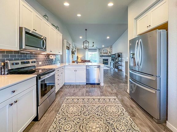 This is a practically new 4bd home in one of the newer subdivisions in the North part of Colorado Springs. You will love the main level living with a master suite and another bedroom on the main level. Modern and appealing finishes give this home the open and bright feel you are looking for. Walking distance to Pine Creek High School and Encompass Heights Elementary school - the newest elementary school in D20. Flooring throughout the main level (composite wood) accentuate the clean modern look. Wall of windows of the keeps the home bright and airy. Great views of Pikes Peak from the front porch. Super modern kitchen complete with stainless steel appliances and a large eating bar that separates the kitchen from the living area. You will love the main level master suite compete with oversized shower, dual vanities, walk in closet, beautiful light tile work. The second bedroom on the main level is next to a full guest bath with beautiful tile work as well. Washer and dryer are included in the main level laundry room. Off the back is a large covered deck. Fully fenced and landscaped backyard with sprinkler system, and room to play. Plenty of privacy as homes backs to a green space. Only 1/2 a block walking distance away from the community green space and walking trails. The finished basement offers a large family room with JBL ceilings speakers installed, 2 large bedrooms, and another full bathroom. You will love the location of this home and the new community of North Fork. Just off Powers and Old Ranch, this home offers easy commutes to anywhere. Plenty of restaurants, shopping, entertainment, parks, hiking trails, schools and open space nearby. Amenities: Sprinkler system, fireplace, D20 Schools, fenced yard, central air, Backs to Open Space, Walk to Schools
