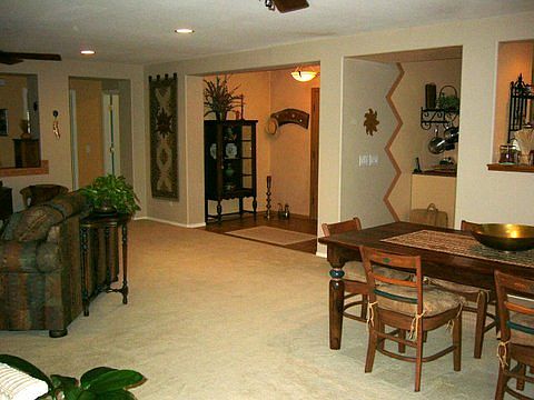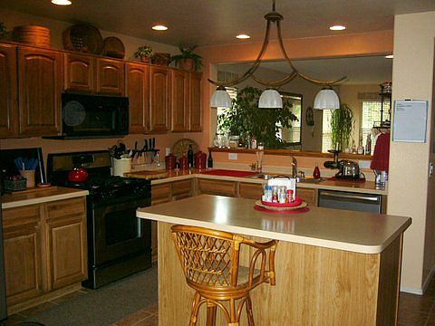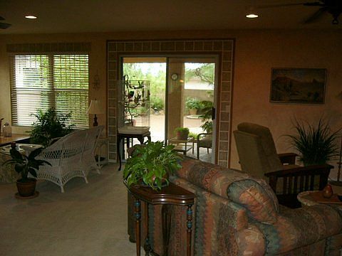 * Enjoy this spacious 4-bedroom with wood floors installed in 2015. Spacious kitchen w/upgraded solid hickory cabinets, work island, gas stove & stainless steel appliances opens to the great room & nice breakfast area overlooking the front yard. The 55'' TV and all appliances plus some outside furniture & grill stay. Rear yard is a peaceful, shaded oasis complete with extended covered patio, water feature & flagstone hardscape. Large master has lovely French doors that lead to the rear yard. Both full baths have executive height vanities, Corian countertops & the master has double sinks. Enjoy the great mountain views as you walk the trails.