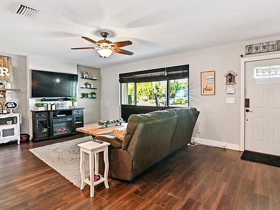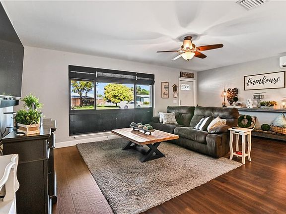 Spacious Three Bedroom, Two Bath Split Floor Plan with a One Car Garage Boasting an Almost 500 SF Bonus Entertainment Room with Large Screen Projector, Perfect for Game Day Parties With Friends and Family. Additional Storage Room for Luggage, Seasonal Decor or Household Equipment. Outside Storage for Lawn Equipment, Eight Perimeter Cameras and a Portable Generator that Plugs Directly into the Panel. Central Ac Plus Four Mini-split for Selective Cooling. Impact Windows Through Out With Accordion Shutters on Back Room Windows. Large Newly Fenced Yard with Room for a Pool (Plans Approved and Available to Buyer). 1,864 SF of Family Living Plus a Garage. No HOA, Centrally Located with Quick Access to All Commuter Highways! Ready to Move in!!!