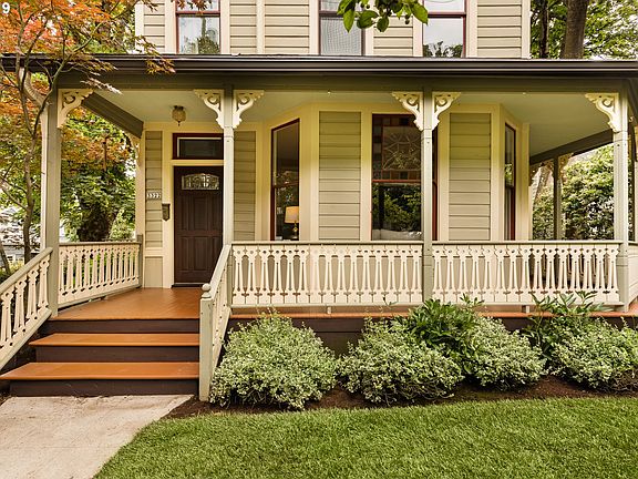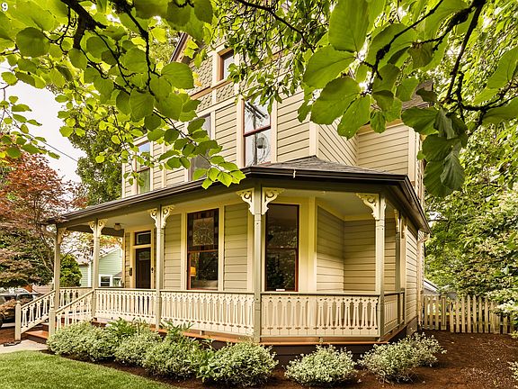 Thoughtfully restored historic Frazier House featured in Portland Magazine. This quiet Victorian w/ private wrap around porch is the perfect spot for warm summer gatherings. Dramatic 12ft ceilings, original Fir floors throughout, 3 spacious bedrooms & bath up. Renovation includes: new foundation, electrical, wood windows, AC, fully remodeled kitchen w/ custom cherry & glass cabinets. Minutes from downtown, OHSU, South Waterfront & more! [Home Energy Score = 4. HES Report at https://rpt.greenbuildingregistry.com/hes/OR10010203]