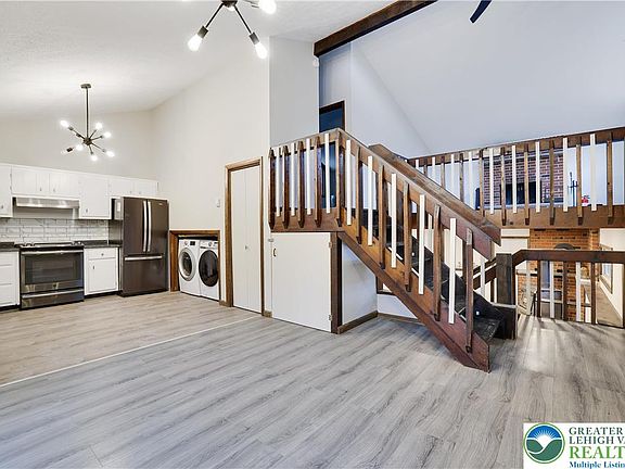 Welcome to 3322 Woodland Drive! This saltbox type home sits in an amenity filled gated community that is STR friendly. This home offers double everything except the kitchen with its unique layout. Walk into the dining room and kitchen, which offers a sliding door leading to the large deck. Go up just a few steps and find a living area, bedroom and bathroom or walk down a few steps to find an identical layout. Perfect for a mother daughter duo or even a parent wanting some peace, as each floor has a living space. Relax by the inside fireplace or wood stove or move outdoors to a fire pit while enjoying nature. This home sits close to I80, Shopping, Mt Airy Casino, Ski resorts, water parks and so much more. Schedule your showings today