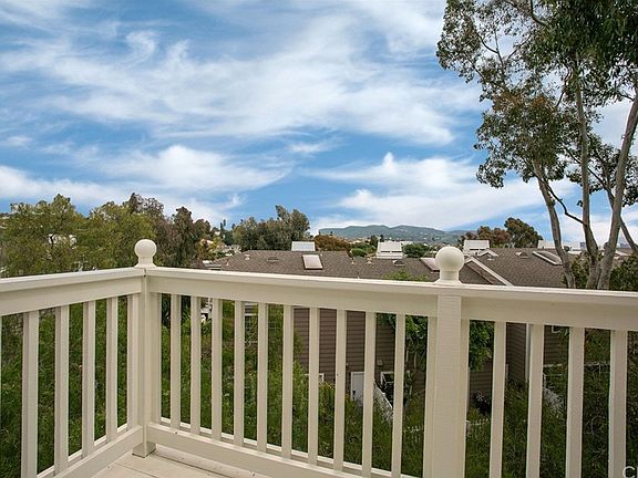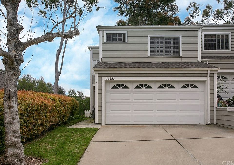 Cape Cod Style, split level townhouse located in the gated Marinita Townhomes. This Andover Alt model has 2 bedrooms, 2.5 bathrooms, with 1334 sqft of living space and 2 fireplaces. This is an end unit location with no one above or no one below you, 2 car attached garage, private driveway and a great location within the tract, only a short walk to pool, tennis, clubhouse and a location that does not back to Golden Lantern. Enter the front door onto an entry foyer with two story ceilings and hardwood floors. Walk down a flight of three stairs to the living room with 12 ft ceilings, raise hearth gas fireplace with wood mantle & decorative paneling, duel glass sliders opening to mountain view balcony, a cozy dining area with custom light fixture and a modernized kitchen with white floral designed ceramic tile counters & backsplash, wood floors, white cabinetry with glass doors, 4 burner electric range & oven, dishwasher, microwave and refrigerator. There is a downstairs powder room and 2 large second story master suites w/en-suite bathrooms. The master bedroom has vaulted ceilings, raise hearth gas fireplace, glass slider to view balcony & an adjoining master bathroom w/double vanities, walk-in closet and soaking tub with shower. The secondary bedroom has plantation shutter, paneled door slider closet and an en-suite bathroom. The two car garage has Elfa shelving form the Container Store, remote opener and laundry area with washer & dryer included...a cute, clean home.