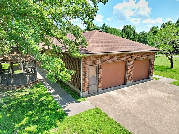 Pride of ownership shines in this well maintained, custom brick ranch situated on +/- 1.23 acres in a peaceful country setting! Just off a paved road for easy access, this 3 bedroom, 2.5 bath all electric home offers quality construction, well thought out features make this home move in ready! Central vacuum system, two cozy fireplaces, casement windows for great natural light, and a comfortable sunroom to relax in year round. Full basement has one finished room with a fireplace, along with ample storage or expansion potential, and a storm shelter. Gazebo in the backyard to sit and enjoy the beautiful surrounding nature. The attached 2 car garage is complemented by a 24 X 30 detached workshop with a 10 foot door for storing your camper, boat or large equipment. There is also a yard shed for more storage. New septic system installed end of 2024! Plenty of room for your gardening or entertaining. Don't miss out on this rare opportunity to own a solid, well loved home with room to grow! Property is being "Sold as Is."