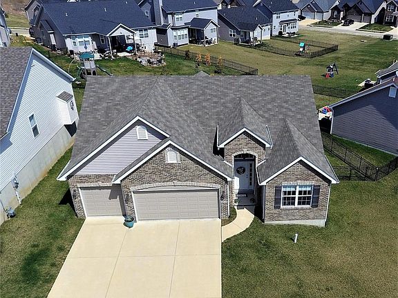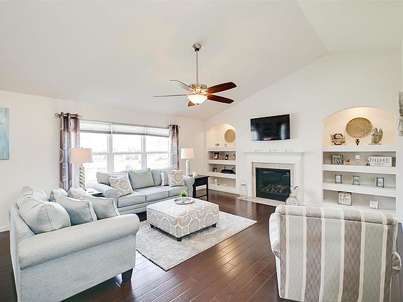 Welcome to this immaculate, 4 years young, split floor plan, 3 car garage ranch in sought after Amberleigh Woods. This home features exquisite brick + stone exterior, wrought iron fenced yard, oversized covered patio, & the interior has upgrades galore! As you enter, you'll immediately notice the 12 foot tall entry way, engineered wood floors, wrought iron spindles, & tasteful light fixtures. The living room features a vaulted ceiling, gas fireplace w/marble surround, & custom built-ins. 42 inch maple cabinets w/crown, tile backsplash, and touchless faucet are a few of the amenities this spacious kitchen boasts. The master bed. has a walk-in closet & access to the bathroom which features an oversized garden tub, double bowl vanity, & shower w/slider doors. The partly finished bsmt has a family room & full bath, along w/plenty of storage. Custom top down, bottom up blinds throughout the home. Amberleigh Woods has a community pool, & 3 gazebos, all near schools, shopping, & restaurants.