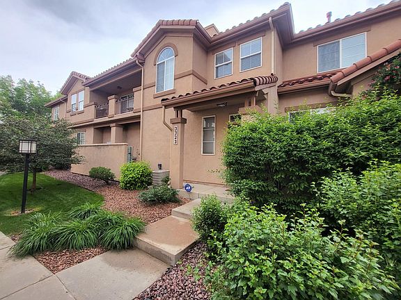 Welcome to an attractive community complex that's close to I-25, minutes from Fort Carson, World Arena, shopping, restaurants, and school. Courtyards @ Quail Lake condo property is the place to live. This 2 bedroom, 2 bath, and 2 car attached garage is a perfect place to enjoy the Colorado Springs experience. A brand new carpet was installed in August 2022. The large primary bedroom consists of a ceiling fan and two vanities with a walk-in closet. It also has a deep bathtub in the main bathroom. Enjoy the gas fireplace in the family room and entertain your guests on a large covered balcony while having access to the community playground area with basketball and volleyball courts. A brand new kitchen stainless steel refrigerator has been ordered for delivery. The white refrigerator you see in the kitchen currently will be moved into the garage for the tenant to use after the new kitchen refrigerator gets delivered and installed. It includes a washer and dryer in the main living quarter. You are within 10 minutes from the 5-star Broadmoor Hotel, and all that the Front Range of the Rocky Mountains has to offer. Don't miss out on living in this fenced and well-kept landscaped Courtyard @ Quail Lake condominium community. Includes trash, HOA, landscaping, and snow removal. Minimum of 12 months lease but preferred 12 months ++. Anyone 18 years of age or older must apply.
