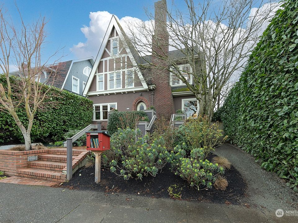 Ideally tucked between Mt. Baker's Hunter Boulevard and Lake Washington, this 1926 Tudor craftsman offers classical, elegant architecture updated with modern living spaces. Formal living and dining rooms with picture rail moulding provide the perfect opportunities for congregating together or warming up next to one of two wood-burning fireplaces. French doors open to the huge deck, overlooking the backyard patio and garden. A full 3 floors of space allows for 4 bedrooms up, complete with a top floor bonus space showcasing Mt. Rainier & Lk. Wash views, perfect for play space or home office. Newly remodeled 5-piece primary ensuite bath w/ heated floors, attached garage for your gear, all in one of Seattle's premier neighborhoods.