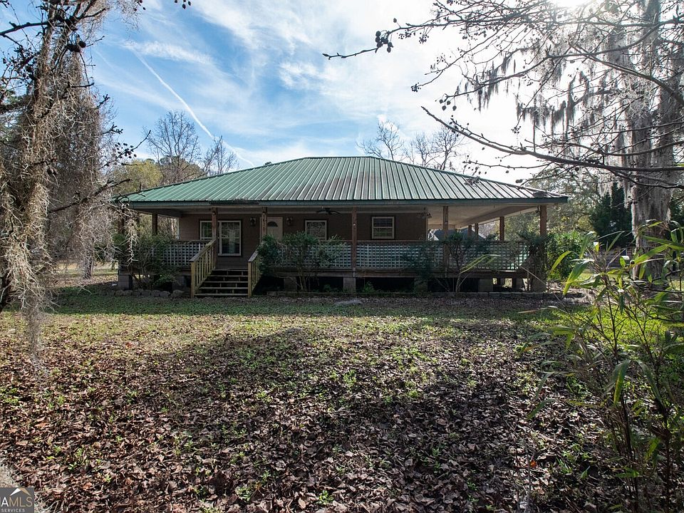 Don't miss this charming country home. Located in the more rural unincorporated area of Kingsland, this home is adorable and perfect for those just starting out or looking to downsize. The large wrap around front porch is spectacular and begging for some rocking chairs and company. The home has a bright open floor plan with 3 bedrooms and 2 bathrooms. The kitchen is brightly lit and features solid surface counter-tops with bar stool seating that opens to the large living room/dining room combination. The primary bedroom is spacious and the primary bath has a large, tiled, walk-in shower. There is an outbuilding for you garden tools and a fenced back yard for your fur covered friends. The HVAC and well pump were replaced in 2025 and the house has a metal roof. The home is being offered in "as-is" condition and is priced with that in mind.