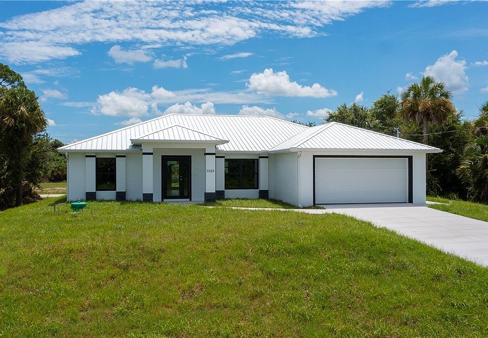 This extraordinary 3 bedroom/2 bath CUSTOM BUILT home sports an impressive array of designer-inspired features which include stunning accent walls in both the living room and master bedroom as well as beautiful 24" x 24" floor tile throughout, contemporary lighting fixtures and ceiling fans, and vaulted ceilings in the spacious living/dining area. The large kitchen boasts a stainless-steel appliance package, an oversized, 8' flowing island with a built-in wine cooler, an abundance of cabinets with granite counter-tops and soft-close drawers as well as a multi-shelved pantry. The master bedroom has a walk-in closet and an extraordinarily well-appointed ensuite with a fully tiled shower and a well-proportioned vanity while the guest bathroom has a tub/shower combo - also fully tiled. The laundry room has both washer/dryer hookups, while the attached 2-car garage provides both extra storage space and a separate side door eliminating the need to raise the overhead door for pedestrian access to and from the outside. In addition to the long list of decorator features found within the home, you'll find the exterior is just as impressive. This beautiful, brand-new home has a sturdy metal roof, impact resistant doors and windows, a covered entryway (leading to a custom designed front door) and a decorative stone facade. A French door leads to the covered lanai (under truss) and the backyard - perfect for sitting back and just relaxing at the end of a busy day. BONUS: This particular homesite has no adjoining buildable back lot adding a much-coveted layer of privacy for the homeowners. Located in Port LaBelle, this beautiful home is ideal for a growing family as it is close to schools, shopping and restaurants, or a retired couple who desires a home with both ample living space and a welcoming ambiance. Call today to schedule your private showing.