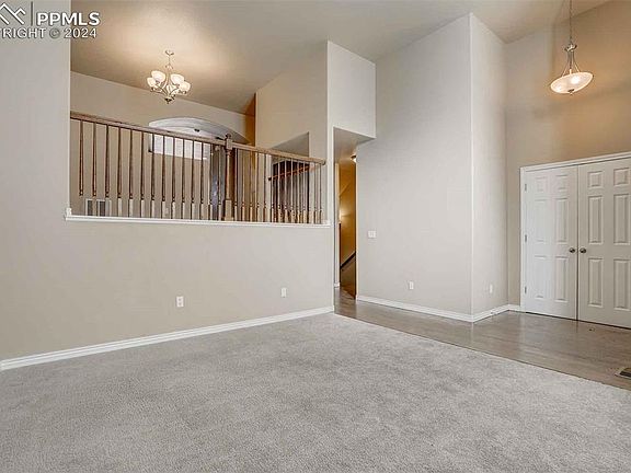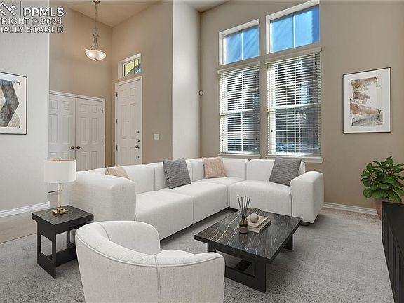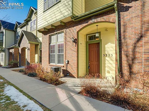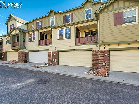 Nestled in the highly desirable Townes at Kettle Creek, this 3-bedroom townhome offers breathtaking mountain views, modern comforts, and a prime location with unbeatable access. Situated just off Powers Boulevard, you're minutes away from the Air Force Academy, making this home as convenient as it is charming. The upper level boasts three spacious bedrooms and two full baths, including a primary suite designed for relaxation. The primary bath features a luxurious soaking tub, a separate stand-up shower, dual vanity, and elegant tile flooring, complemented by a walk-in closet for all your storage needs. The two additional bedrooms, located at the opposite end of the hallway, share a full bath with a tub/shower combo, offering both comfort and privacy. A dedicated laundry room completes the upstairs layout for ultimate convenience. The main level is a true highlight, with a unique elevated area overlooking the living room that invites endless possibilities—perfect for a formal dining area, home office, or cozy sitting space. The open-concept kitchen and family room are accented by a gas fireplace and provide a seamless flow for daily living and entertaining. The kitchen boasts a large pantry, a breakfast bar, large island and walkout access to an elevated balcony, ideal for enjoying your morning coffee or evening sunsets. A separate living room near the front of the home and a large powder bath add functionality to this level. Downstairs, you'll find the attached 2-car garage with under-stairs storage and a generously sized utility room, offering even more storage options. Located in the highly rated school District 20, walking distance to Pine Creek High School, this community features beautifully maintained landscaping, park-like grassy areas, and elevated vantage points for exceptional views. This home truly has it all—comfort, convenience, and a vibrant community setting.