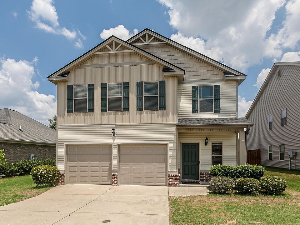 Spacious 2 story home In popular Columbia County! 2854 sq ft w/ brick accents, 5 bedroom, 3 full baths w/ guest bedroom and full bath down. Check out this open floor plan w/ great room, kitchen and dining all open! Dramatic 2 story foyer! Brand new roof ! New paint! 2 Brand new garage doors! New carpet throughout and new dishwasher! Kitchen with island, granite and back splash. High smooth ceilings & coffered ceiling too! Lots of windows for natural light w/ 2 inch faux wood blinds. Hardwood in foyer, kitchen & dining. Arched openings, HVAC cooling coil 3 years old. Fireplace in great room. Master bath w/ soaking tub, separate shower & double vanity. Lots of closets and storage. Large covered back porch, fenced yard, timer controlled sprinkler. 2 car garage. Subdivision pool, clubhouse, playground, sidewalks, street lights and pond. This Home is located near schools, shopping, interstate, restaurants & Fort Gordon!