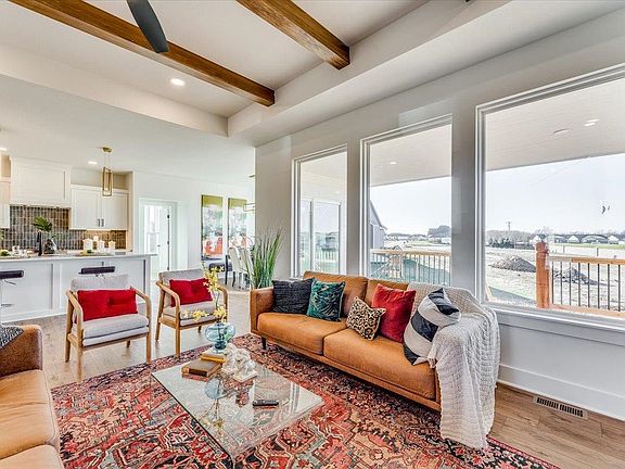 Welcome home to Socora's Lockmoor plan where classic charm meets modern comfort. Stepping through the front door, you are greeted by a warm and inviting living space adorned with a beamed ceiling that adds a touch of sophistication. The open floor plan seamlessly connects the living room, kitchen and dining area, creating an ideal setting for family gatherings. The kitchen is a chef's delight with a spacious island, ample counter top and cabinet space. Discover the primary suite with its own ensuite bath and suitable closet space. Two additional bedrooms on the main level share a stylish bathroom, providing comfort and privacy for the entire family. Another attraction of this plan extends to the basement serving as an entertainment hub with a wet bar, two more bedrooms and a full bath. Step outside to the large covered deck and oversized yard, ideal for outdoor activities and relaxation. Sod, sprinklers and well are included in the price. Fontana offers a zero-entry pool with splash pad, playground, walking paths and lakes. It's also minutes away from NewMarket Square for all your shopping and dining needs. A $175 mailbox key fee is collected at closing. LOWER SPECIALS, LOWER TAXES AND MAIZE SCHOOLS. All information deemed reliable and not guaranteed. OPEN THURS - MON 1:00-5:00 OR ANYTIME BY APPOINTMENT.