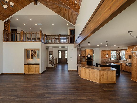 Awesome Bend location! This spacious 5-bedroom, 4.5-bath residence is perched atop a quiet cul-de-sac, offering both seclusion and breathtaking views of the surrounding scenery. Boasting 4,815 square feet of living space, there's ample room for every family member to find their own space for relaxation or entertainment. The open floor plan showcases a grand living room with high ceilings and expansive windows that flood the interior with natural light. The chef's kitchen, complete with a large island and abundant storage, is ideal for hosting guests. You'll find plenty of dining space with a formal dining room and a cozy breakfast nook. All five bedrooms are generously proportioned, and the primary suite, conveniently located on the main level, provides easy access to a private hot tub and adjacent den. This home offers numerous upgrades and exceptional quality, including brand-new, beautiful flooring. Don't miss the chance to explore this outstanding property!