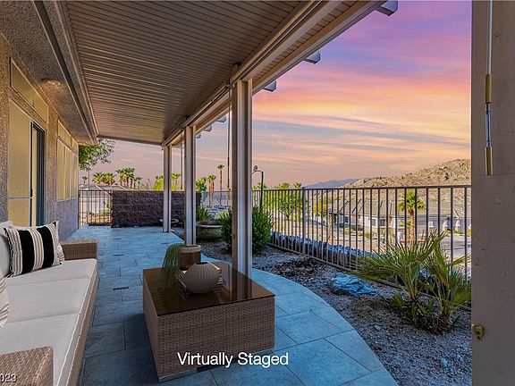 Inside the Quail Ridge gated duplex community is this rarely available 3 bed / 2 bath 2 car garage is one of a very few townhomes in town with a two car driveway. Parking like this simply doesn’t exist in attached communities. Even more uncommon is the home is perched on the highest terrain of Quail Ridge with outstanding views across the valley. The interior offers a renewed kitchen with updated granite, stainless appliances and dark oak raised panel cabinets. Tiled throughout, home is further decorated with custom drapes and stack stone fireplace. Additional granite in baths with dual under mount cabinets and custom vanities across from a walk-in shower. Lengthy dual mirrored closets offer twice the space of traditional walk ins. Full length covered patio shelters both sliders from the western sun until the early sunsets caused by the nearby mountains. Find the rare town house here in our vacation town that has your must haves and inside and outside extras that sets this home apart.