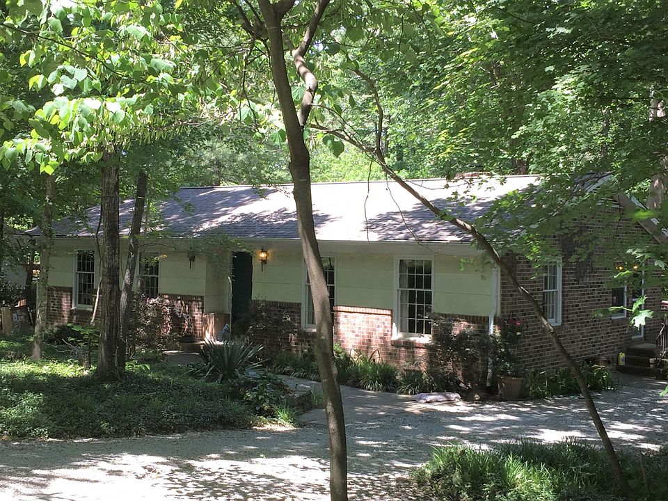 Three BR house overlooks a pond and beautiful wooded lot in a nice quiet neighborhood. Close to Duke University/ Med Center/ VA Hospital and walking distance to Durham Academy and City of Durham Greenway trails. Features include large deck, fire pit, refinished hardwood floors and energy efficient heat pump/ sealed crawl space. Small cabin / shed in back yard