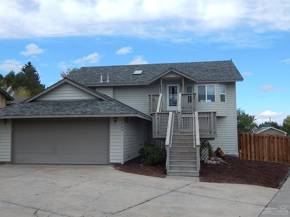 Well maintained SW Redmond Home. Move in ready, new paint, carpets professionally cleaned. Excellent investment potential. Lower level could be separate living area, and or office. Huge landscape yard with outdoor fire ring and auto sprinkler system. Views of Smith Rock Park. Bay windows make this home sunny and welcoming. Central A/C. Garage with built in shelving and work area.
