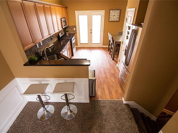 - Kitchen Features: Breakfast Bar, Cabinets Stain, Eat-in Kitchen, View to Family Room, Stone Counters