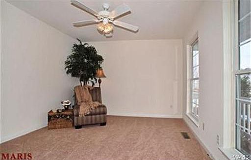 3323 Silvertrail , St CharlesPut away the hoses! 4 bedroom 2.5 bath home on .31 acres lined with mature trees has a sprinkler system! Past covered porch, hardwood welcomes you in the entry foyer & extends past cozy living room & formal dining room with chair rail. Back open area offers large family room with 5-bay window, beautiful fireplace & surround sound. Breakfast room bay exits to 24x12 patio & fenced yard. Sunny kitchen features Corian countertops, island with breakfast bar, cermic backsplash & microwave. Laundry room with shelving and half bath are off kitchen. Master bedroom with crownmolding has adjacent sitting room, a perfect office or private retreat! Awesome master bath boasts separate his/her sinks, vanity area, jet tub & walk-in closet. Three additional bedrooms share a full bath. Additional features: LOTS of ceiling fans, storage shed with electric, enclosed soffits and fascia, garage shelving. Home Protection Plan too. Enjoy this great family neighborhood with easy access to 370!