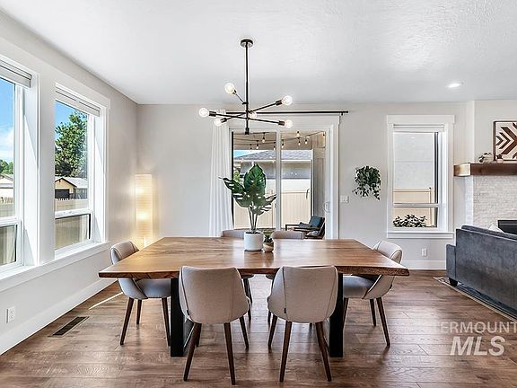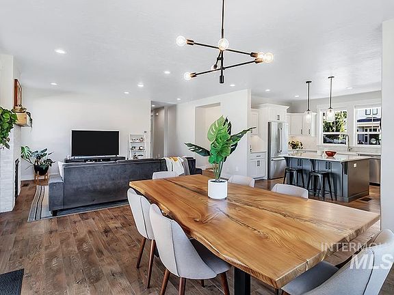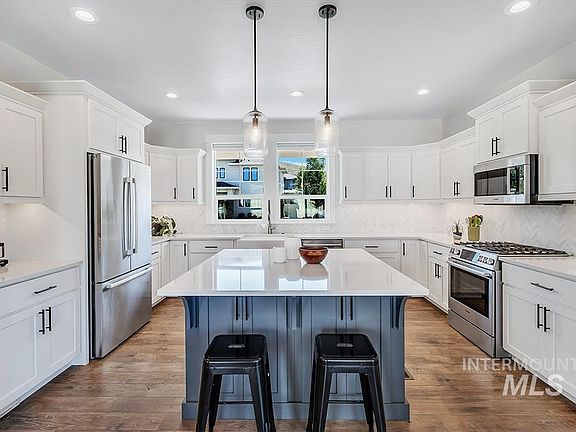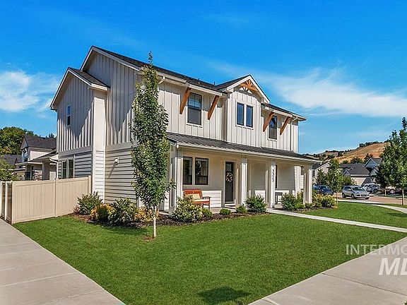 A sleek modern farmhouse on a prime corner lot in the North End! This charming pocket neighborhood has unbeatable access to foothill trails with Hyde Park & downtown Boise located just a straight shot down Hill Road! The home's white clean-lined exterior has striking architectural appeal, layered with wood eaves & black accents. The interior displays an impressively-sized footprint filled with polished, stylish, & livable spaces. Designed with entertaining in mind, the spacious great room connects public quarters under tall ceilings with large windows & warm wide-plank LVP, dotted with upscale finishes throughout. The at-home chef will appreciate the kitchen's quality Bosch® appliances, generous prep island, walk-in pantry, & timeless finishes. Modern convenience extends into the primary suite, featuring an expansive walk-in closet with custom built-ins & a spa-style bathroom equipped with a fully-tiled frameless glass walk-in shower, soaker tub, dual-sink vanity, & finishes that go above & beyond.